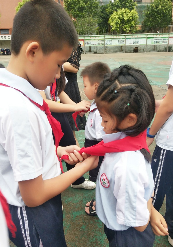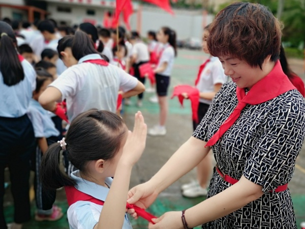 2019年5月31日,中山市火炬開發區新苗學校的校園里,隊歌嘹亮。一年級和六年級的全體師生聚集在國旗下,舉行了隆重的新隊員入隊儀式。
