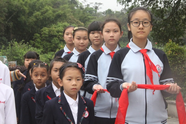 少先隊員們在老師的帶領下,早早地來到橫門保衛(wèi)戰(zhàn)珊州紀念廣場,自覺排好隊,等待著人生中意義重大的時刻——加入光榮的少先隊組織。活動開始,伴隨著《中國少年先鋒隊隊歌》,思緒仿佛在這一刻停止又飄揚,隊旗、紅領巾顯得格外鮮艷。接著,由開發(fā)區(qū)副總輔導員吳書銘講述橫門保衛(wèi)戰(zhàn)的故事,隊員們聽的極其認真,緊接著少先隊員集體向革命烈士敬獻鮮花,默哀3分鐘,三鞠躬。表達對先烈們的深切緬懷。也明白如今的幸福生活來之不易,對革命先輩肅然起敬,對火炬區(qū)的認知度和歸屬感進一步提升。