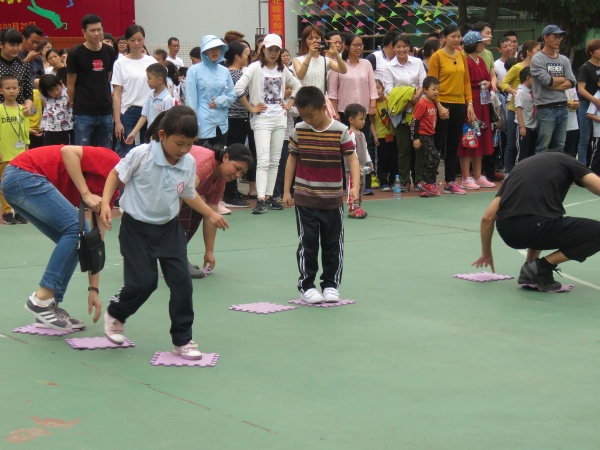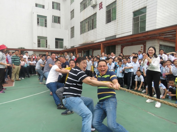 本屆運動會分兩場進行,上午低年級親子運動會,下午中高年級田徑運動會。親子運動會上,運動會籌備組本著讓更多學生與家長都參與其中的原則,特設置了拔河、親子跳繩、接沙包、“摸石頭過河”、“毛毛蟲接力”等趣味十足的團體項目,充分體現了人人都是運動員以及團結向上、奮勇拼搏的體育精神。拔河比賽開始啦!家長之間密切配合,運動賽場上洋溢著家長和孩子們的歡聲笑語。大家都熱情地參與其中,充分拉近了家長和孩子之間的距離,讓家長體驗到運動中的快樂、童真。家長們的積極參與、孩子們歡呼助威,為活動添了更精彩的一筆,把此次運動會推向了高潮。每一個團體項目都競爭激烈,熱鬧非凡。每一個場景都展現著親情的其樂融融、和諧與快樂!同時昭示著運動帶給大家的活力與歡樂。