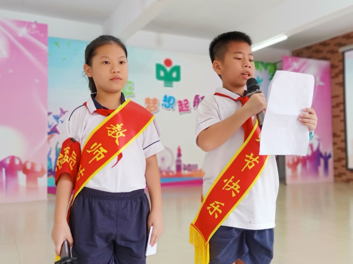 首先,大隊(duì)長羅藝靈代表大隊(duì)部向全體同學(xué)提出尊師敬師的倡議,以文明規(guī)范的學(xué)習(xí)狀態(tài)尊重老師的辛勤勞動(dòng),并養(yǎng)成良好的道德和行為習(xí)慣。然后,鄭結(jié)霞校長號(hào)召孩子們每天主動(dòng)向老師問好,認(rèn)真上好每一節(jié)課,友好地和老師溝通,并且?guī)ьI(lǐng)孩子們向全體老師送上祝福。