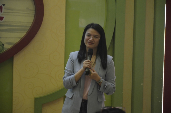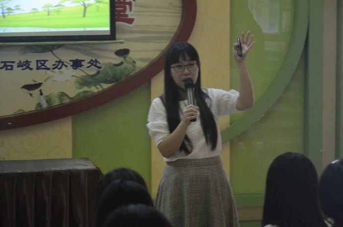 市華僑中學張環老師在《青少年心理特點與教育》主題培訓中,引導教師重視和加強對青少年的心理健康教育。