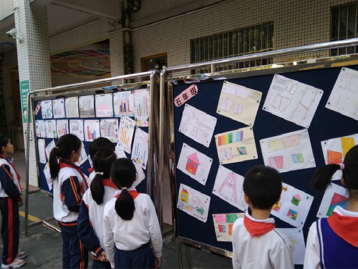 校外的知識拓展活動主要展示學(xué)生豐富多彩的數(shù)學(xué)作品,如一年級的有趣拼搭、二年級的奇思妙想七巧板、三年級的圖形變換、四年級的生活中的數(shù)學(xué)(條形統(tǒng)計圖)、五年級的創(chuàng)意多邊形、六年級的尋找圓中的秘密。通過學(xué)生的精心準備,通過圖畫和手工創(chuàng)作,展示出學(xué)生對數(shù)學(xué)文化的認識。此次比賽共評選出160幅優(yōu)秀作品進行展示。