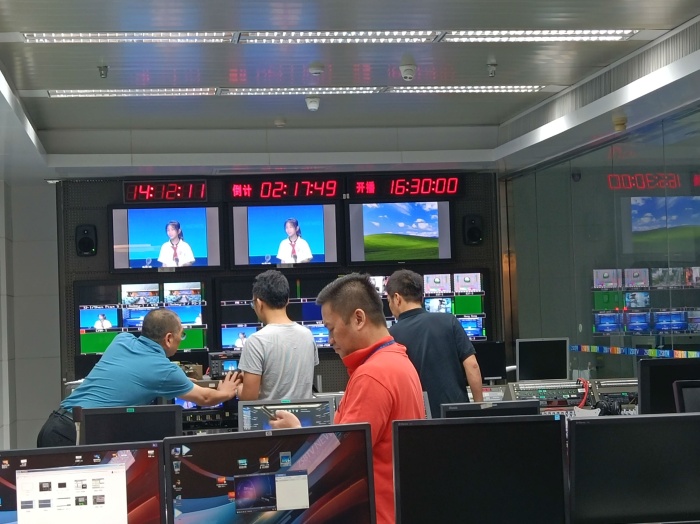 離開轉播車,第二站是參觀中山廣播電視臺的錄播間。同學們平時經常在家收看中山新聞,沒想到今日可以踏入新聞直播現場,站在主持人的位置去看到環形錄播間的全貌,又好奇又興奮。通過劉主任、李主任的講解,同學們不僅知道了新聞直播與主持的節目流程,還了解到了播音主持工作風光背后的不易與艱辛。