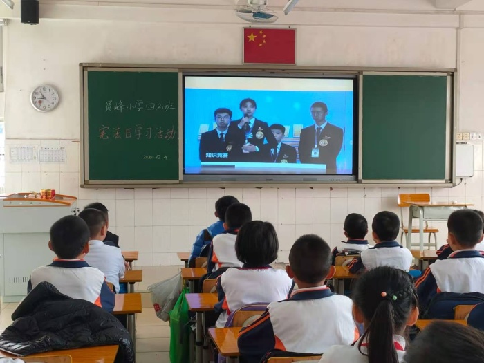 石岐區員峰小學利用周一國旗下講話時間進行憲法學習和宣傳活動,活動中,劉曉君副校長讓學生了解了憲法是我國的根本大法,號召同學們學習法律知識,樹立法治觀念,遵守憲法和法律。接著各班班主任利用班會課在班級開展學法活動,引導學生遵守憲法。 在12月4日當天,組織全體師生登陸青少年普法網站,收看網絡直播,進行憲法晨讀活動。在憲法學習周,員峰小學還組織全體學生、家長開展憲法知識競賽,在網上答題,爭創憲法小衛士,做到了全員參與。