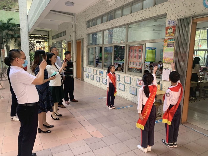在學校行政的陪同下,培訓班學員一行首先參觀了學校的校園環境和校園文化,聽取學校文化宣傳員對“日行一孝”“三心教育”“好家風建設”等特色項目介紹,并觀摩了學校的升旗儀式與大課間活動。