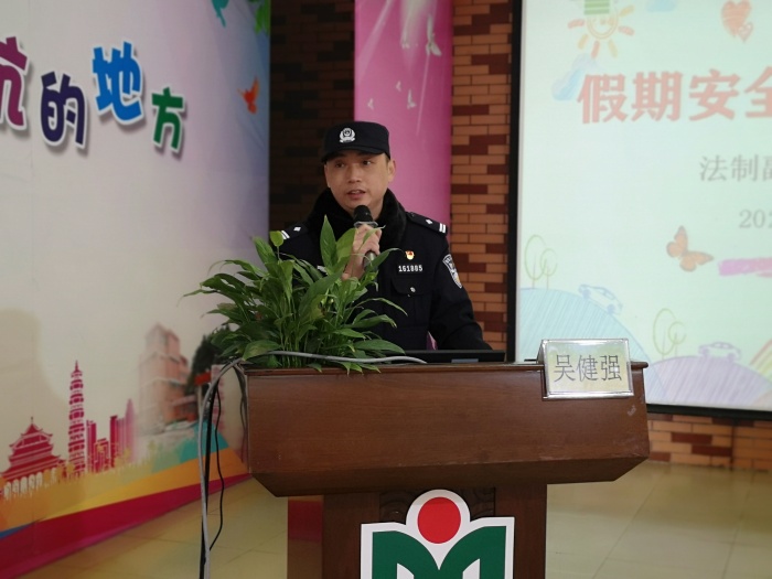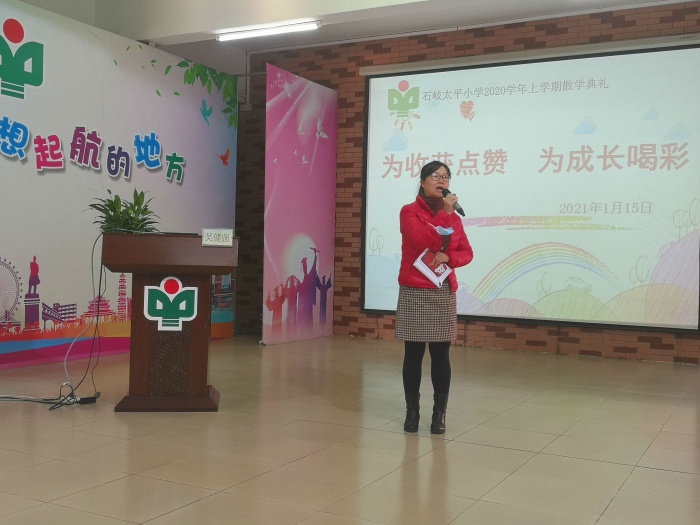 這次散學典禮,主要圍繞疫情防控、假期安全教育進行。分四個環節進行。第一個環節:太平小學法治副校長吳健強叔叔負責主講假期安全。他說:春節期間城區禁放煙花炮竹,在允許燃放地方,必須要有父母的陪同;外出遇到陌生人示好,不要隨便搭話,必要時可以打110求助;為更好做好疫情防控措施,同學們不要往人多熱鬧的地方扎堆,外出要戴好口罩……同學們希望同學們牢記安全,遵紀守法,過一個安全、快樂的寒假。