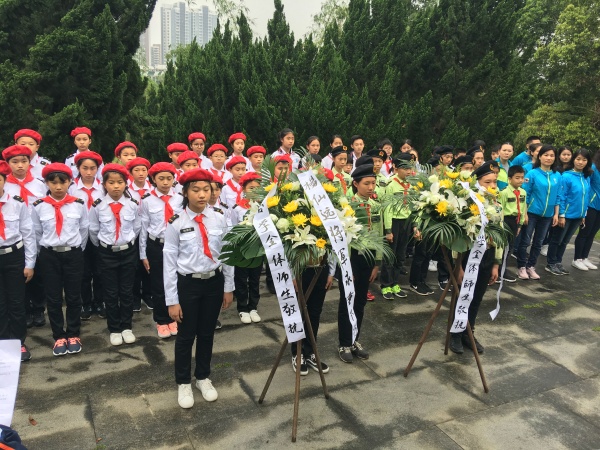 在黃麗儀校長的帶領下,學校隊干及少年軍校領袖團隊員帶著全體師生的深切緬懷之情,來到了紫馬嶺公園,深情緬懷楊仙逸將軍。
