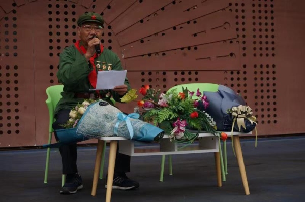 在演講中,何思源爺爺向大家講述了當年他參加對越自衛反擊戰的故事。無論是靠松山戰役、嫩金山戰斗,還是馬布爾戰役,每個戰場的地形都十分復雜和險峻,而且時刻臨著敵人的槍林彈雨,戰士們的進軍之路可謂舉步維艱,不少同志壯烈犧牲,而他自己本人也多處負傷,至今身上仍有多處彈片。談及隊友的英勇獻身,何爺爺忍不住含淚動容,并期望年輕一代要銘記歷史,緬懷先烈,向先烈學習。