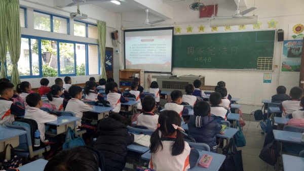 2019年12月4日是第六個國家憲法日,為全面落實深入學習宣傳和貫徹實施《中華人民共和國憲法》的要求,根據相關文件精神,石岐第一小學開展了“學法守法·健康成長”主題活動。學校利用國旗下講話、晨讀、主題班會以及校園廣播站、宣傳欄、黑板報、電子屏等途徑積極宣傳憲法精神,弘揚憲法權威。