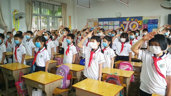 沐浴著五月的春光,經過漫長的等待、緊密而認真的復學準備后,5月18日,厚興鄭偉權學校的校園又開啟了“重啟鍵”,四-六年級的學子迎來了復學后別樣的“開學第一課”。學校認真做好每一個環節,上午7:10,行政和值日老師們早早在校門執勤等候,四至六年級的學生,在老師的引導下,戴好口罩,間隔一米距離,體溫檢測無異常后有序進校復學。