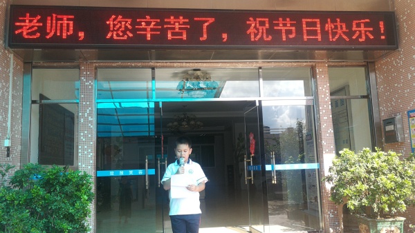9月10日是第35個(gè)教師節(jié),為了表達(dá)對(duì)老師的尊重,在全校形成尊師重教的風(fēng)氣,讓每個(gè)學(xué)生了解老師,尊重教師,并用實(shí)際行動(dòng)表達(dá)對(duì)教師的敬意,厚興鄭偉權(quán)學(xué)校召開了“老師,您辛苦了!”主題教育活動(dòng)。在這次活動(dòng)中,厚興鄭偉權(quán)學(xué)校劉依婷校長(zhǎng)發(fā)表了致辭,接著是學(xué)生代表盧志安同學(xué)講話。隨后各班在課室進(jìn)行簡(jiǎn)單而隆重的主題教育,同學(xué)們用自己喜歡的方式表達(dá)了對(duì)老師的感激之情。詩朗誦、合唱、說說心里話……每個(gè)節(jié)目學(xué)生都提前精心準(zhǔn)備、演練,將自己最美的一面展示給大家,為教師節(jié)獻(xiàn)禮,認(rèn)真勁兒讓人感動(dòng)。