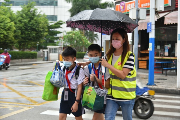 早上7:15分,學校行政、值日老師、家長護衛隊及蓮峰派出所警察叔叔們,早早地在校門口熱切地等候著返校的師生們。7:20分開始,學生有序地按學校錯峰安排陸續返校,盡管隔著口罩,也能感受到同學們按奈不住的喜悅之情。在老師的引導下,同學們以1米間距排隊,依次檢查復學碼和承諾書,通過體溫檢測等防疫步驟后才進入校園,把好入校安全第一關。四至六年級273名學生,全都順利返校。