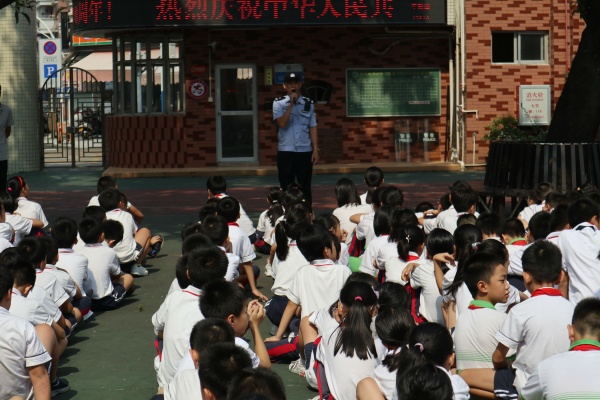 下午2:10分左右,校園內(nèi)突然響起了消防警報鈴聲,各班正副班主任迅速引導學生快速疏散。教師帶領(lǐng)學生捂住口鼻,彎腰撤離,各樓層導護教師在樓梯拐角處協(xié)助學生撤離,指導幫助學生如何安全地通過樓梯,沿著學校指定的出口逃生,有序地到達操場安全地帶。整個逃生過程中,學生基本做到下樓梯快速行走,無強行沖、擠行為,動作迅速,不慌亂。整個撤離時間在1分50秒之內(nèi)完成。隨后,學校安全主任潘杰對本次疏散演練進行了總結(jié),學校的法制校長吳健強警官除了觀看整個逃生過程,還對學生有序疏散進行了肯定和表揚。同時也對全校學生進行了簡單的國慶長假的安全教育。同時,社區(qū)的民警叔叔們送來的安全教育宣傳的橫幅。