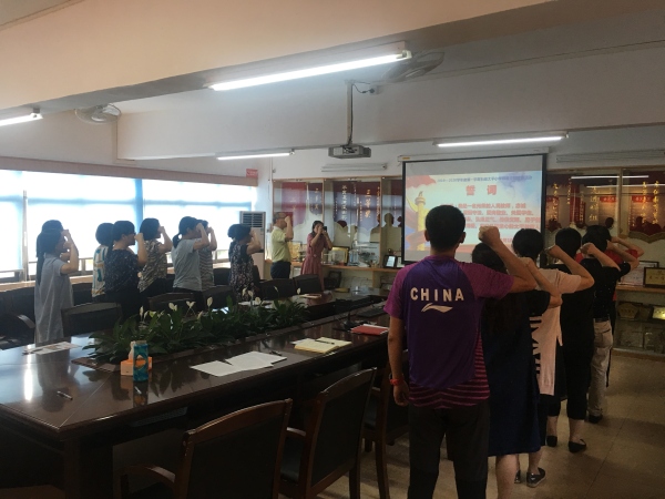教師節(jié)慶祝活動在學(xué)校的會議室舉行,由鄭結(jié)霞校長主持。活動的第一個內(nèi)容是進行“自覺愛國守法,潛心教書育人”為主題的師德主題教育月啟動儀式。在啟動儀式下,鄭結(jié)霞校長師德教育月的啟動意義做了深刻的說明,然后帶領(lǐng)全體老師進行了莊嚴(yán)的宣誓。宣誓結(jié)束后,為真正落實師德主題教育活動的精神,全體老師簽訂了師德承諾書。