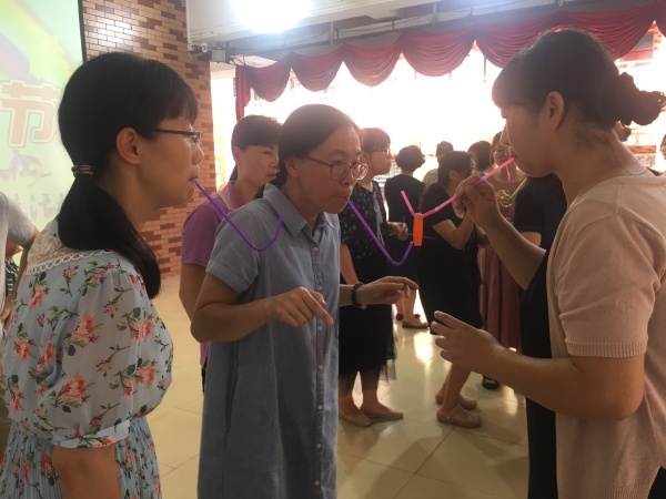 活動的第二個內(nèi)容是在學(xué)校的小舞臺舉行慶中秋趣味活動。在小舞臺上,老師們一改這幾天開學(xué)的疲態(tài),個個精神抖擻。活動由潘杰副主任支持。此次的趣味運動會共設(shè)2個活動項目,一個是 “心心相印”的吸管傳圈,另一個是“愛心傳遞”的傳呼拉圈。活動過程熱鬧非凡,整個小舞臺都充滿了歡聲笑語,引得旁邊的學(xué)生和家長都樂不可支。