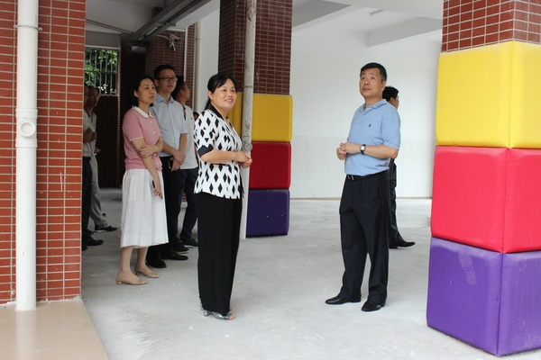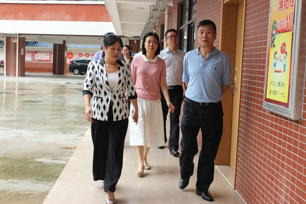 在該校楊翠萍校長、歐玉旋副校長等行政的陪同下,黃桂光書記一行先到西廠校區(qū),之后又馬不停蹄趕到該校岐江校區(qū)。每到一處,黃書記都認真察看學校周邊環(huán)境,了解交通情況,詢問有無存在安全隱患;巡視校園每個樓層,查看學生學習條件、老師辦公條件,了解還有什么困難亟待解決。何委員、彭局長對該校兩個校區(qū)的情況非常熟悉,他們曾多次來到學校調(diào)研,何委員、彭局長向黃書記介紹了各自了解的情況,楊校長也一邊帶路一邊介紹。本學期,該校兩個校區(qū)共有32個教學班,學生1400多人,班級和學生人數(shù)較多,雖只有一套行政班子,但全體行政不畏困難,齊心協(xié)力,開學前早早回校,多次開會商討,提前做好詳細的工作規(guī)劃,因此兩個校區(qū)開學第一天師生精神面貌良好,秩序井然。良好的開局也得到領(lǐng)導的一致贊許。