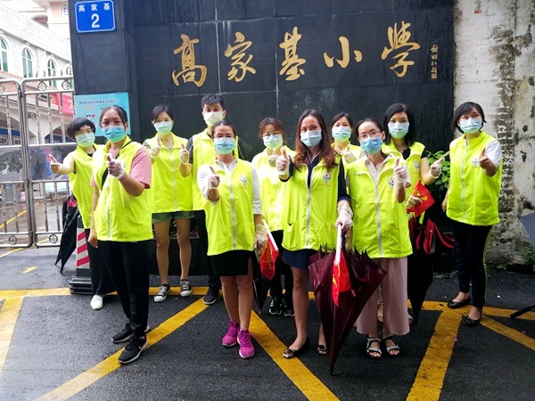 2020年5月18日,石岐高家基小學四、五、六年級的同學們迎來開學日。為了保障孩子們第一天順利上下學,區交警、民警叔叔提前上崗,與家長志愿者們組成護衛隊,在校門口義務維持交通秩序,讓孩子順利入校,讓家長放心離開。