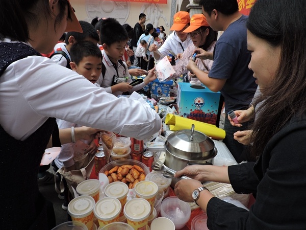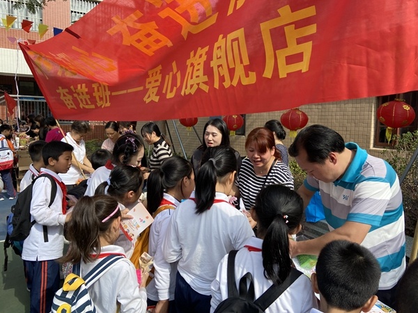 午后的暖陽(yáng)照得人心里暖暖的,下午1點(diǎn)30分,同學(xué)們期待已久的愛(ài)心義賣(mài)活動(dòng)正式開(kāi)始,全體家長(zhǎng)、師生分別在兩個(gè)校區(qū)進(jìn)行愛(ài)心義賣(mài)活動(dòng)。活動(dòng)場(chǎng)面熱火朝天、秩序井然,同學(xué)們熱情洋溢,每個(gè)班級(jí)的愛(ài)心店鋪前都擠滿了絡(luò)繹不絕的學(xué)生,老師們也紛紛慷慨解囊,積極參與到活動(dòng)中來(lái),盡己所能奉獻(xiàn)自己的一片愛(ài)心,整個(gè)校園充滿了濃濃的愛(ài)意。滴水成淵,聚沙成塔,義賣(mài)站的商品一件件地在減少,而愛(ài)心款卻一點(diǎn)點(diǎn)地在增多,金錢(qián)有價(jià),愛(ài)心無(wú)價(jià)。通過(guò)義賣(mài)活動(dòng),全體學(xué)生養(yǎng)成了樂(lè)于助人、樂(lè)于奉獻(xiàn)的良好道德風(fēng)尚。