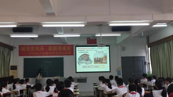 首先是王金銘和陳少丹兩位新教師的課堂展示。2時20分,四4班的同學在高家基小學王金銘老師的引領下上了一節生動有趣的課。展示課的主題是Unit 3 My Week 中的Vocabulary部分。王老師運用新穎的課件,生動有趣的動畫圖片,娓娓道來,把每一個新詞解析得清清楚楚,明明白白;她還充分滲透節日文化知識,拓寬學生的知識面,例如感恩節,黑色的星期五等學生感興趣的知識;對學生的學習行為做出積極貼切的評價,例如well done,good job,excelllent等,取得良好的教學效果。
