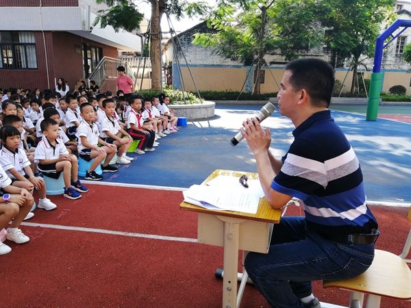 9月9日上午,石岐高家基小學召開了以“壯麗70年,奮斗新時代“為主題的愛國主義教育校會。會上黃榮勝校長從不同的角度講述新中國成立70周年的偉大成就,鼓勵孩子們勇于拼搏,奮發進取,努力成為對社會對國家有用的杰出人才。黃校長把一腔愛國之情抒發在自己激情洋溢的講演中,使全體師生深受鼓舞。