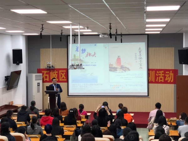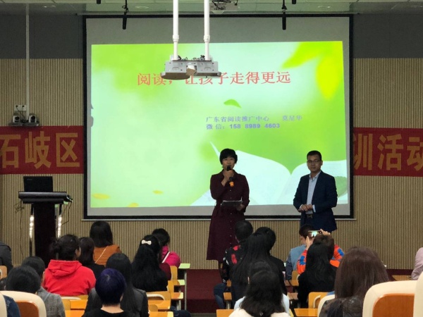 廣東省青少年閱讀中心副主任、情智閱讀發(fā)起人莫星華老師給家長們做了《閱讀,讓孩子走得更遠(yuǎn)》莫老師給家長們講述了閱讀的意義。閱讀,是孩子汲取知識和認(rèn)識世界的途徑;閱讀,也是滋養(yǎng)心靈、優(yōu)雅修養(yǎng)的重要途徑。經(jīng)典閱讀給孩子的心靈予以全面的滋養(yǎng)。特別是在信息碎片化、流行化、庸俗化的今天,呵護(hù)孩子的童真、啟迪心靈,培育成熟的心智,閱讀是一條很好的途徑。同時,莫老師給了家長們?nèi)c建議:1、營造氛圍,以身作側(cè)。2、分級閱讀,尊重規(guī)律。3、互動分享,深度閱讀。同時指出卡通漫畫類的閱讀給孩子帶來負(fù)面的影響。