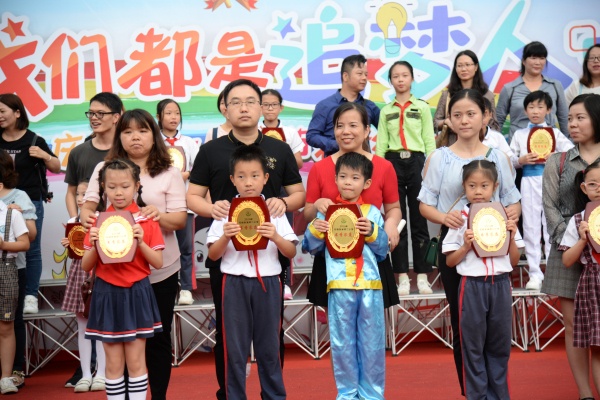 5月31日,石岐張溪鄭二小學舉行了“我們都是追夢人”慶祝六一兒童節表彰大會暨文藝匯演活動。活動伊始,尹程副校長介紹了出席本次活動的領導及嘉賓有石岐區團工委書記馬柏成,石岐區教育事務指導中心副主任郭洪亮,石岐區宏基派出所民警、石岐張溪鄭二小學法制副校長黃存容警官,石岐一中隊楊桂花警官,康華社區黨委副書記葉蓮心,張溪資產公司關沛樟書記,張溪鄭二小學家委主席楊罡,退休教師及家委家長代表三百余人。接著,戴織校長上臺致辭,代表學校向孩子們致以最真誠的節日問候,以“我們都在努力奔跑,我們都是追夢人”回顧了學校一年來取得的進步和成績,提出了學校今后的發展規劃,并希望全體同學珍惜時間和機遇,努力學習,全面發展,不辜負老師家長的厚望,不辜負祖國的期望;希望每一個人都能夠發揚夢想精神,繼續在奔跑中擁抱夢想、成就夢想。隨后,尹程副校長主持表彰大會,對2018學年度優秀家長及學生進行表彰,表彰項目包含學校優秀家委、班級好家長、書香家庭、學校優秀護校隊、優秀少先隊干部、優秀班干部、美德少年、閱讀之星、優秀少先隊員等。家長和孩子們面帶微笑地上臺領獎與領導嘉賓合影留念。