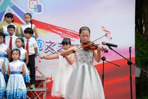 在主持人激情洋溢的話語中精彩紛呈的文藝匯演拉開了帷幕。此次活動節目內容豐富,形式多樣,精彩紛呈,高潮迭起。張溪村委傳承中華傳統文化的《舞獅》表演看得孩子們目瞪口呆;朗誦社團的詩歌朗誦《我有一個夢想》鏗鏘有力;張溪村委帶來的張溪大棍博得孩子們陣陣掌聲;舞蹈社團《快樂的音樂課》將歡樂灑滿整個校園;夏蔭芳老師帶來的《貝加爾湖畔》飄逸而空靈,讓人沉醉;非洲鼓《最炫民族風》展示了孩子們多方面的才藝;班級大合唱歌聲嘹亮,唱響云霄,把慶祝活動推向了高潮……整個校園回蕩著此起彼伏的掌聲。大家用歡快的歌聲唱出了小朋友的幸福和愉悅;用悠揚的琴聲奏出了同學們的純真和朝氣,用優美的舞姿舞出了少先隊員的理想和追求;用質樸的語言道出了同學們的夢想和方向。