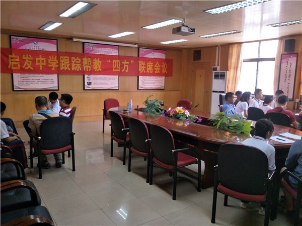 與此同時,在班主任工作室召開了本學期期末跟蹤幫教四方聯席會議。會議由德育處馬健媛主任主持,邀請了啟發中學法治輔導員林雄兵警官以及學校關工委、太平社區團委領導等四方力量對部分同學進行跟蹤幫教,個別談心。