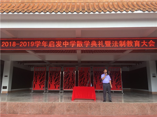 啟發中學召開2018-2019學年度下學期散學典禮暨法制教育大會發布時間:2019-07-06 14:14 信息來源:本網站 瀏覽次數:125