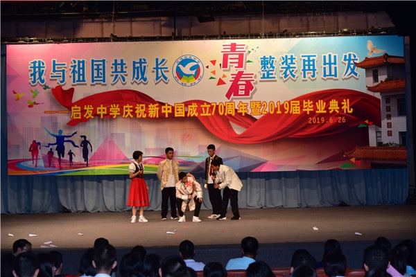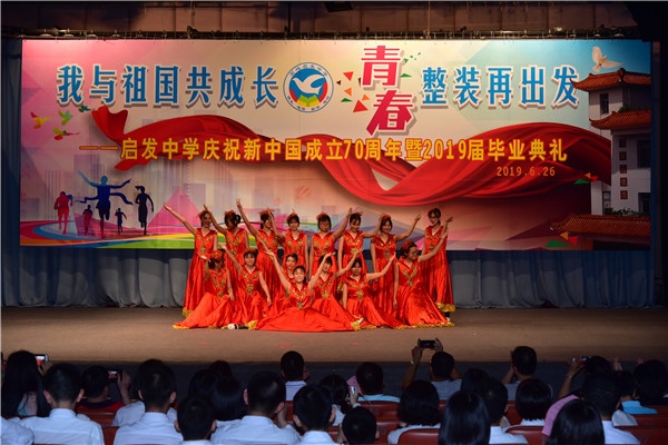 6月26日下午,啟發(fā)中學(xué)在石岐影劇院隆重舉行“我與祖國共成長,青春整裝再出發(fā)”2019屆啟發(fā)中學(xué)初三學(xué)生畢業(yè)典禮。參加此次畢業(yè)典禮的有啟發(fā)中學(xué)全體行政、初三級的全體師生、家長和部分學(xué)校家委。