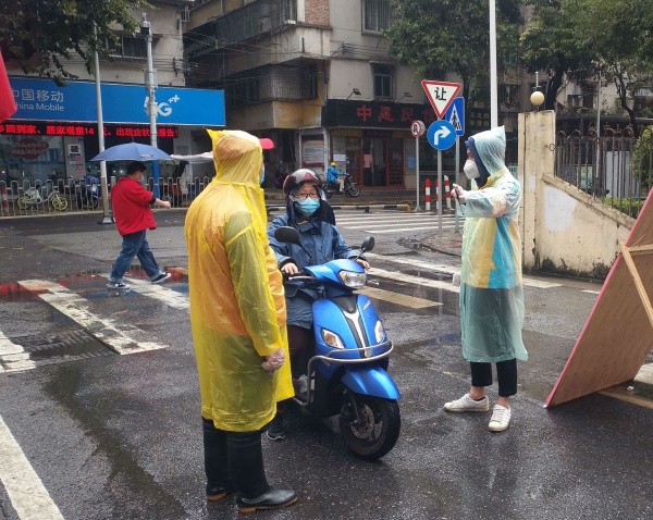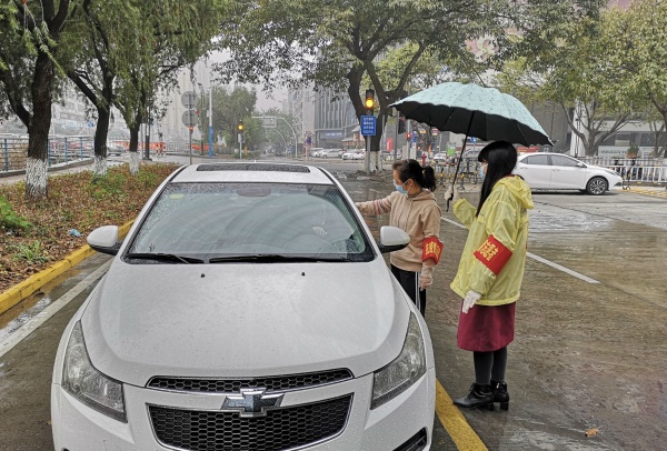 戴著口罩的臉上,雖然看不到表情,但是每個人的眼睛里都透出溫暖而堅定的目光!“先生您好,請把車輛停一下配合我們測量體溫”“現在是疫情防控的關鍵時期,請您注意少出門,回家后記得勤洗手…… ”他們禮貌地請來往的居民出示身份證,耐心地指導居民填寫登記表上的每一欄內容。在協助社區對進出人員測量體溫的同時,老師們還不時細心地向人們普及疫情防知識、宣傳相關防疫要求。即使寒風刺骨、陰雨綿綿,他們卻毫無一絲怨言,以最飽滿的熱情堅守在崗位上!