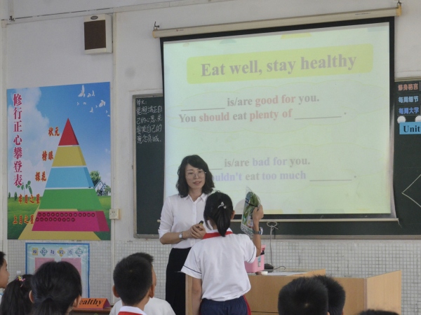 英語科組蔡盈盈老師帶來“staying healthy”一課,深入挖掘課文圖片及重點(diǎn)單詞,采用思維導(dǎo)圖的方式引導(dǎo)學(xué)生復(fù)述故事,分辨常見生活習(xí)慣的好與壞,給予他人保持健康的建議。課堂上,同學(xué)們口語流利,詞匯量豐富,贏得了觀課教師的陣陣掌聲!