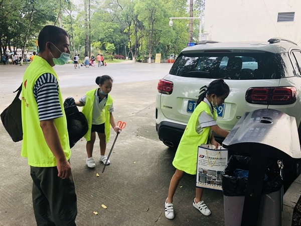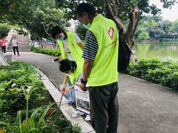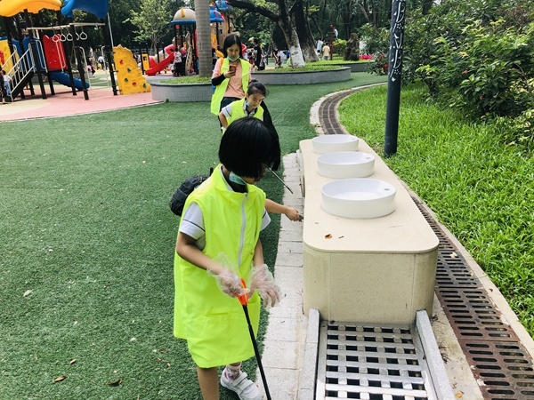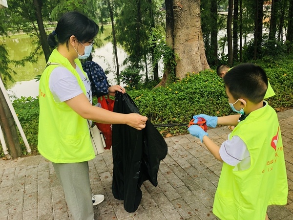 上午9點(diǎn),志愿者服務(wù)隊(duì)在各隊(duì)長(zhǎng)的帶領(lǐng)下,兵分三路:第一服務(wù)隊(duì)由一(3)班師生、家長(zhǎng)組成,主要任務(wù)消毒課室;第二服務(wù)隊(duì)在黃榮勝校長(zhǎng)的帶領(lǐng)下,由黨員、教師組成,主要清理煙墩山;第三服務(wù)隊(duì)在一(2)班師生、家長(zhǎng)的支持下,主要消除逸仙湖公園垃圾死角。黃玉媛老師率領(lǐng)了一支綠色小隊(duì)“向逸仙湖公園“出發(fā)”,有的帶著藍(lán)色手套,有的拿著白色的塑料袋,還有的手拿鉗子,戴手套的同學(xué)撿垃圾,拿塑料袋的家長(zhǎng)收垃圾,就這樣,大家配合的十分默契。不管年紀(jì)大小,父母和小義工們都很認(rèn)真,醒目養(yǎng)眼的義工服成了逸仙湖里一道亮麗的風(fēng)景線。大路上垃圾不多,于是大家鉆到花圃里發(fā)現(xiàn)了大量的垃圾。有游客丟棄的煙頭、紙巾、果皮、瓜子、食品袋等各種生活垃圾,家長(zhǎng)們都說(shuō)沒(méi)想到有這么多垃圾,袋子都快裝不下了。一個(gè)多小時(shí)后,草坪上、過(guò)道上的垃圾就被檢光了。大家陸陸續(xù)續(xù)回到集合點(diǎn),垃圾都裝滿(mǎn)了袋子,大人和孩子們都走得滿(mǎn)頭大汗,雖然累,心里卻是開(kāi)心的,我們用行動(dòng)傳播環(huán)保理念,為逸仙湖公園增添了亮麗的色彩,為逸仙湖公園的美好環(huán)境貢獻(xiàn)了一份力量。