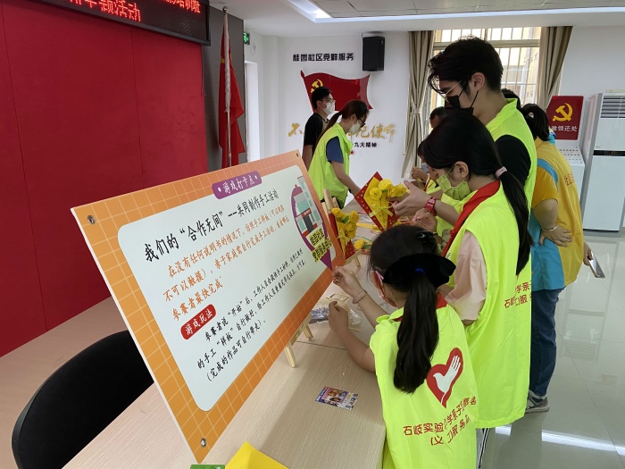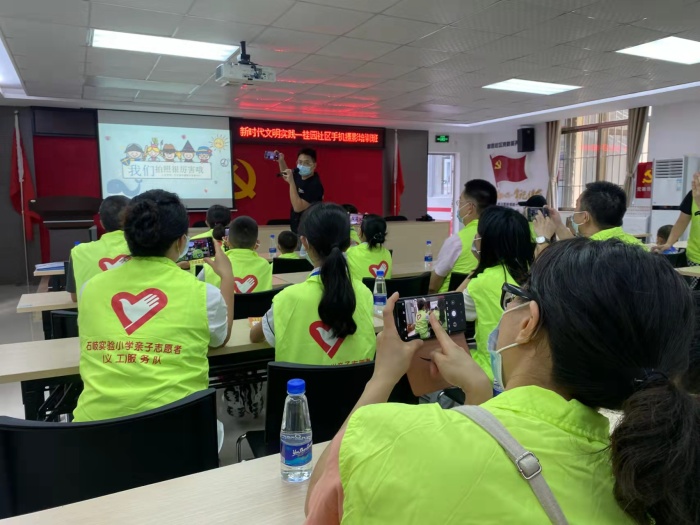 石岐實驗小學少工委提前發布活動通知,落實健康碼、行程碼“雙碼”聯查、健康碼登記及查詢個人活動軌跡后,一行人來到桂園社區,進行了多項創意十足、趣味盎然的闖關打卡游戲活動。家長和隊員們興致勃勃地參與各項活動。燈光的應用,教隊員如何用好手機來拍出更美的照片。學習強國,你是答題達人嗎,答題比賽中。共做手工,親子合作無間。