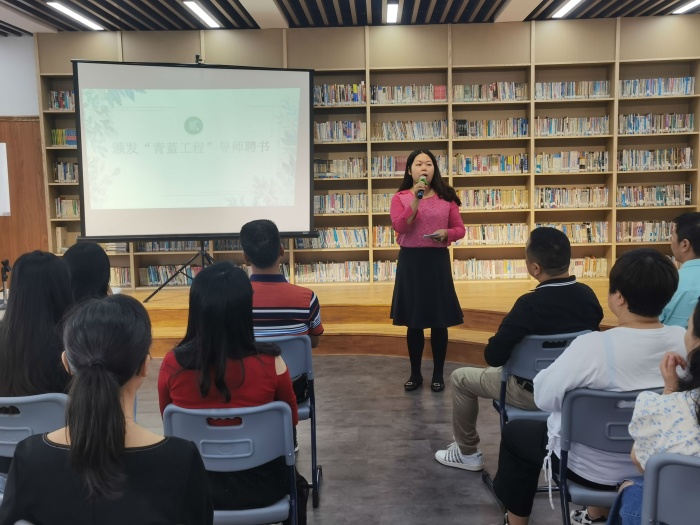 郭校長為骨干教師頒發(fā)了“青藍工程”指導老師聘書。
