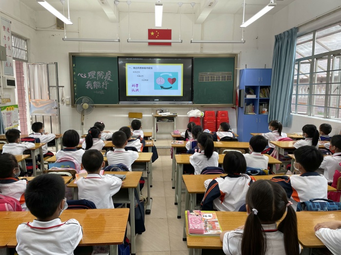 演練結束后,李校長充分肯定了本次演練活動的成效,他對本次演練中處置得當的環節進行肯定,對存在的問題進行強調。接著,全校同步召開了石岐街道中小學“小手拉大手·科學防疫齊步走”專題實踐活動主題班會。班會上,學生認真觀看了《心理抗“疫”我能行》視頻教育片,組織學生們學習相關科學防疫知識,讓大家充分了解了當前疫情防控的形勢,筑牢思想防線。