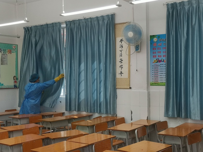 學校安排責任人確認李小明的有關信息,排查重點人群,保健教師鄭少健身穿防護服及時接送發熱學生到觀察室進行初診、隔離,等待疾控中心人員對該生進行進一步檢查。迅速將班級其他學生轉到備用教室采取封閉式管理;沿教室至隔離室路線進行全方位消殺。同時,盧結紅主任開全校廣播,提醒緊急狀況,要求全部師生戴上口罩,暫待在教室,等待下一步安排。正副班主任到各自班級看管本班,校區、樓層負責人馬上到位。