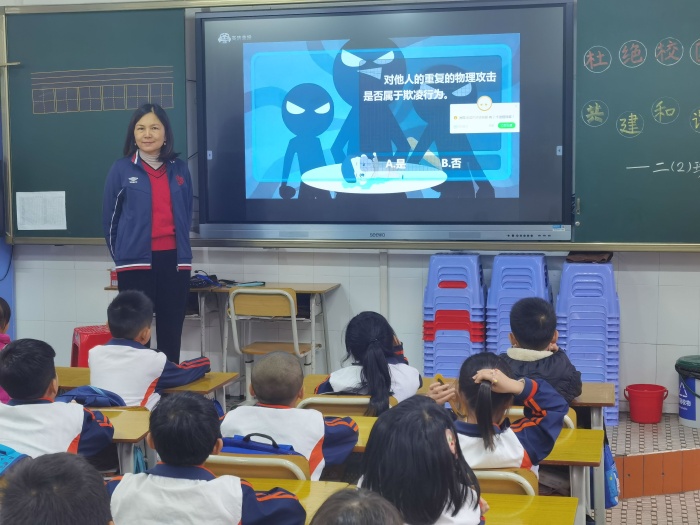 為持續深入做好中小學生欺凌防治工作,2021年11月22日,石岐實驗小學利用國旗下講話向全校師生倡議《杜絕校園欺凌 共建和諧校園》,隨后一起觀看學習視頻。