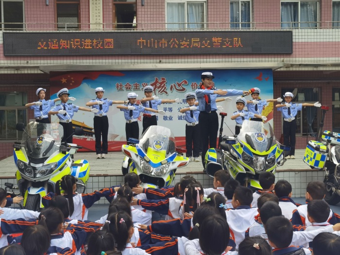 活動中,交警支隊城區(qū)大隊宣傳中隊指導(dǎo)員孫燕同志通過講解、示范、搶答等形式向同學(xué)們講解了日常出行中應(yīng)該注意的各種安全知識。孫警官聲情并茂的講解,引導(dǎo)學(xué)生們在乘坐車輛時要坐在后排座上不能隨意亂動,勸導(dǎo)爸爸媽媽開車出行時要注意系上安全帶、自覺遵守交通法規(guī),注意禮讓行人,努力做到安全出行、文明出行。接著請了十位同學(xué)穿上交警的制服當(dāng)小交警,給他們講授示范常用的交通指揮手勢,同學(xué)們認(rèn)真模仿學(xué)習(xí)。為進(jìn)一步加深同學(xué)們對交通安全知識的認(rèn)識和了解,還采取有獎?chuàng)尨鸬姆绞浇虒W(xué)生們辨認(rèn)交通標(biāo)示標(biāo)牌、電動車騎行知識等。同學(xué)們都積極參與,現(xiàn)場氣氛非常活躍。