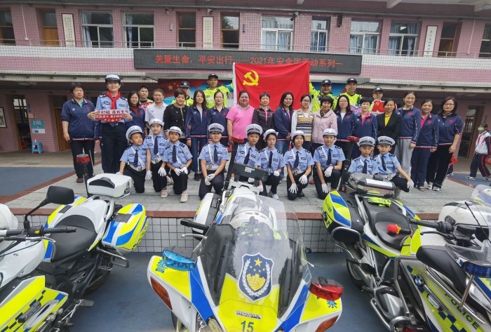 活動結(jié)束后,老師們帶領(lǐng)學(xué)生與英武帥氣的交警叔叔們合影留念。并向交警們表達(dá)了謝意,表示在今后的教學(xué)中會將交通安全知識教育貫穿到日常教學(xué)中去,從小就向?qū)W生們灌輸遵守交通安全法規(guī)重要性,與此同時自己將進(jìn)一步加強(qiáng)交通安全法律法規(guī)自我遵守,努力做到安全、文明、禮讓出行。