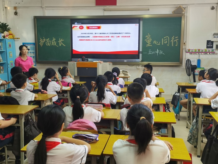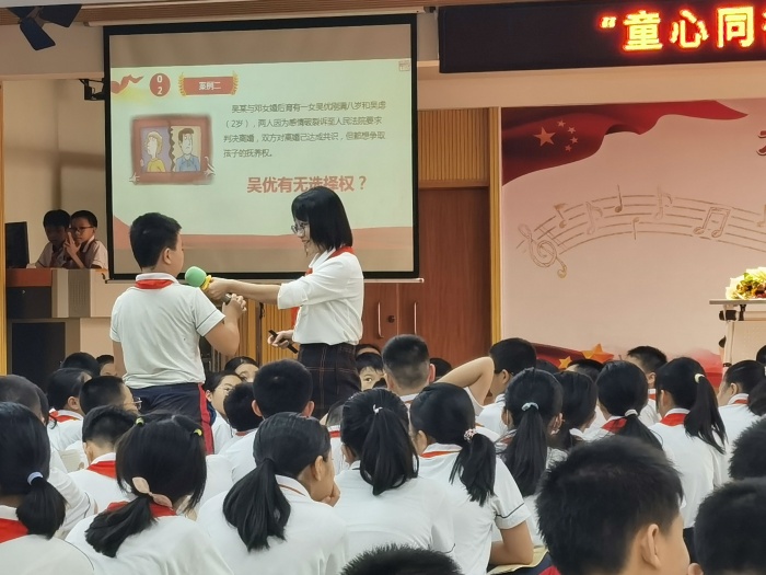 孩子們認(rèn)真傾聽、積極發(fā)言,現(xiàn)場氣氛十分活躍。通過學(xué)習(xí),讓學(xué)生對(duì)兒童權(quán)益有了更深刻的理解。同時(shí)也讓學(xué)生樹立了正確的觀念與態(tài)度,并建立了正確的社會(huì)交往行為。孩子們表示學(xué)到了很多自我保護(hù)知識(shí)。