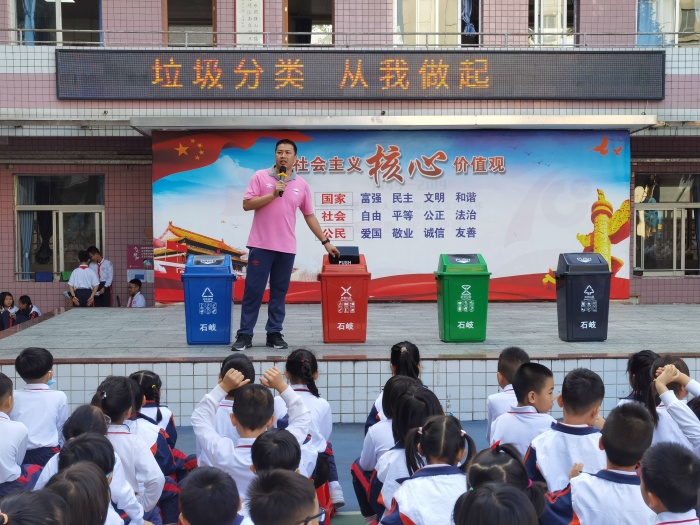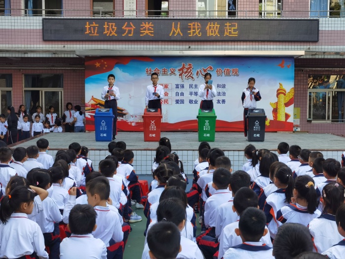 習近平總書記指出“垃圾分類工作就是新時尚”。推行垃圾分類,對于改善人居環境,實現城市的可持續發展,創建節約型社會具有重要意義。垃圾分類,舉手之勞,變廢為寶,人人有責。為了中山天更藍、水更清、山更綠、環境更美好,讓石岐實驗小學的孩子對垃圾分類有更深的認識。在2020年11月16日早上升旗儀式后,石岐實驗小學進行了主題為“垃圾分類 從我做起”垃圾分類倡議活動。