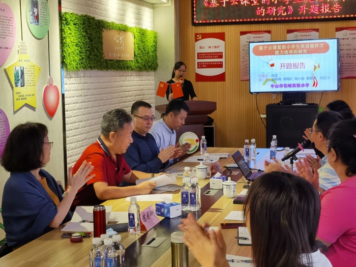 參與報告會的有中山市教育技術中心賈建榮老師、魏國營老師,沙溪鎮教育和體育中心英語教研員、教科研專干張乖祥老師,中山市石岐街道教育和體育事務中心陳再玲老師,課題組全體成員及各學科組長。