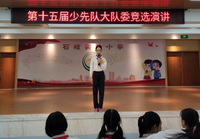 少先隊大隊委競選活動是石岐實驗小學的傳統特色活動。我們通過競選活動,以理想信念教育為核心,教育引導廣大少先隊員們繼承和弘揚少先隊的光榮傳統,增強少先隊員的光榮感和自豪感,促進少先隊員健康成長;同時培養少先隊員的愛國、愛鄉、愛家的情感;激勵教育廣大少先隊員聽黨的話,立志為建設有中國特色社會主義現代化國家貢獻力量,努力成長為社會主義現代化建設的合格人才,做共產主義事業的接班人。