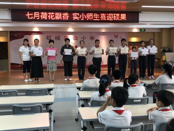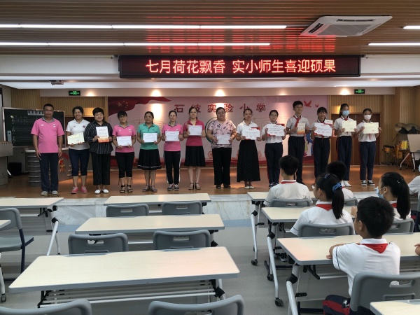抱擁豐收的喜悅,共同見證輝煌!每一份驚喜都是汗水和淚水的匯集,無論是忙碌、還是瑣碎,無論是委屈,還是感動,一路堅定走來,為自己的未來發展打下堅實基礎,為學校貢獻出自己的一份力量!七月荷花飄香,實小師生喜迎碩果!在師生熱烈的掌聲中,頒獎活動圓滿結束。