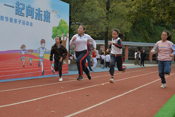 開幕式后,進行的是趣味運動項目,有趣味門球、踏石過河、超級障礙跑。一支支比賽隊伍斗志昂揚,精神抖擻,認真專注打門球,團結協作踏石過河,奮力奔跑越障礙。下午2:00開始,進行的是田徑運動項目,有立定跳遠、壘球、實心球、男女50米、團體10×50米和4×100米接力賽。在賽場上,運動員們奮力拼搏,永不言棄,揮灑快樂的汗水,努力完成每一次比賽,為班級及個人贏得一項項獎章和榮譽。運動場外,由教師和學生組成的啦啦隊為運動員們加油鼓勁,吶喊助威;廣播角一則則為同學、班級加油的通訊稿飽含激情與力量,展現了學生良好的精神風貌,校園里一幕幕振奮人心的場景都是運動會上最美的風景線。
