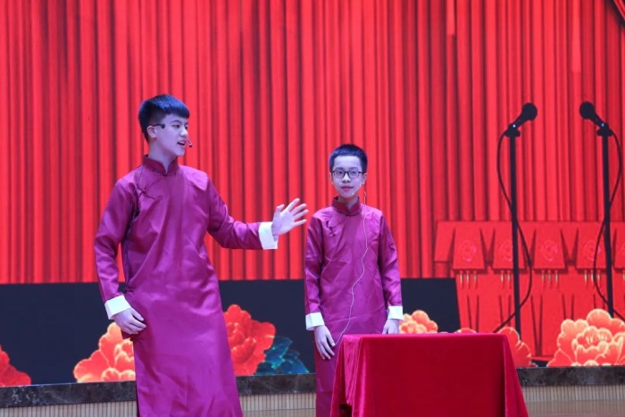 今夜是“狂歡夜”,我們在《回憶小學生活》的相聲中重溫了難忘的小學時光,對正在經歷的初中生活充滿了期待與展望;也在令人捧腹雙簧表演中,感受到了同學們精彩的表演和語言藝術展現的多樣性、豐富性。