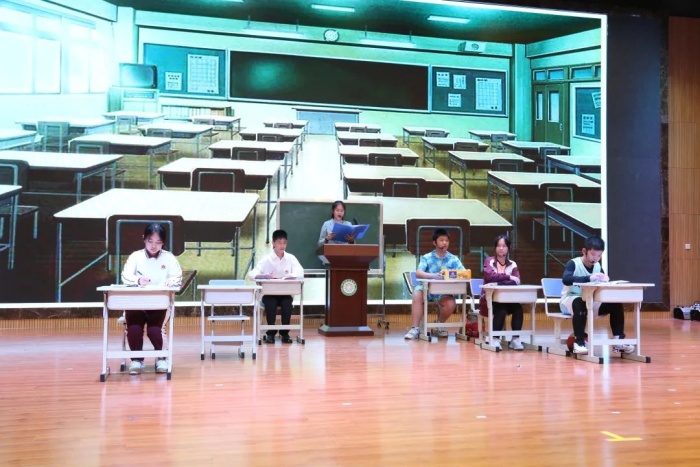 4月29日晚,四位主持人鄭重宣布“中山市大信學校初中部首屆語言藝術才藝大賽正式開始”的話音剛落,禮堂里的燈光逐漸黯淡下來,歡快振奮的暖場音樂緊隨其后,引發了觀眾席里山呼海嘯般的掌聲和歡呼聲。待這一波掌聲漸漸稀疏,開場小品《上學那些事》拉開了比賽的序幕......