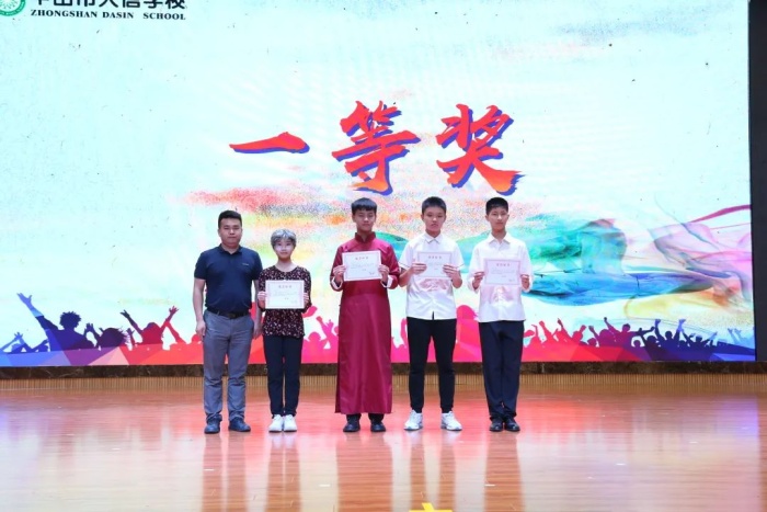這是中山市大信學校初中部首屆語言藝術才藝大賽,馮冠祥校長、杜少君副校長、孫慧濤副校長以及教導處、德育處多位行政、教學顧問胡煒老師擔任此次比賽的評委。為了呈現最精彩的節目,各位級組長、班主任陪同著小演員們利用課余時間一遍遍排練,從臺詞到表演,再到服裝道具,每一個環節都嚴格把關;為了達到最完美的演出效果,從初選到三選,再到兩次帶妝彩排,所有表演者和幕后工作人員都經歷了一重重考驗,克服了一個個困難。直至今晚大幕拉開,精彩紛呈的節目競相亮相,引發了一次又一次的驚呼,贏得了大家一陣又一陣熱烈的掌聲。