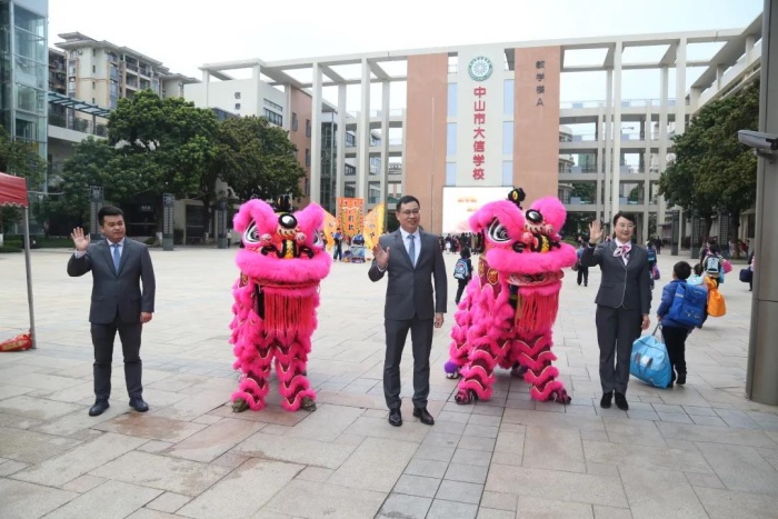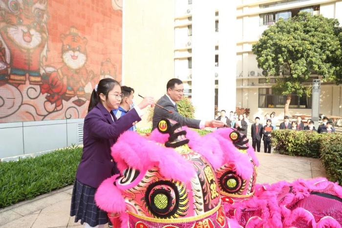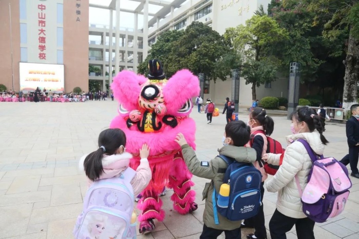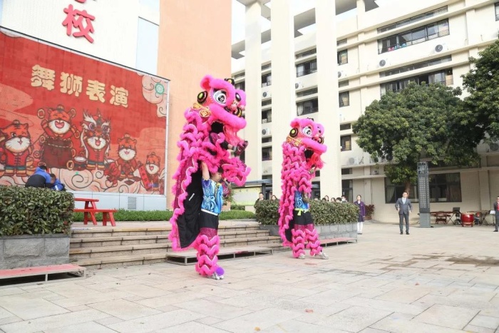 學校特邀南獅醒獅隊進行舞獅表演,大信學校馮冠祥校長和學生代表分別為雄獅點睛、采青納吉。在歡騰的鼓點中,雄獅也用表演為全校師生送來新學年的祝福:學業進步、工作順利!全體師生在感受春節喜慶氛圍的同時增加了對嶺南醒獅文化的了解。